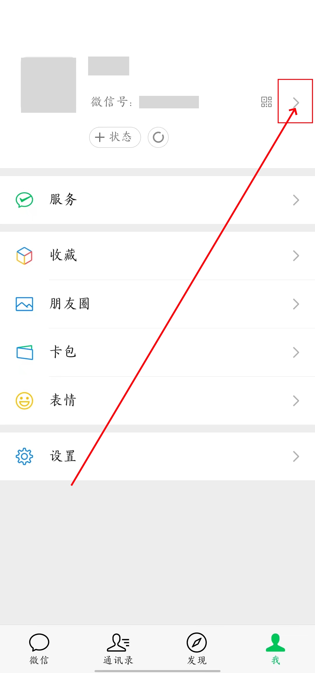2、在【我】的页面点击头像右边箭头,进入【个人信息】页面。