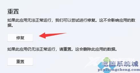 5、最后点击其中的修复即可解决,如果还是不行就点下面的重置