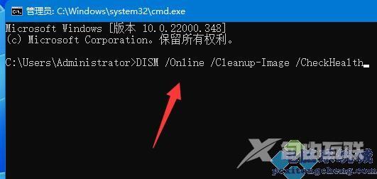 1、输入DISM /Online /Cleanup-Image /CheckHealth回车运行。