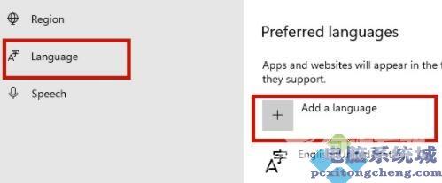 4、进入时间和语言后找到Language选项,然后点击其中的Add a language