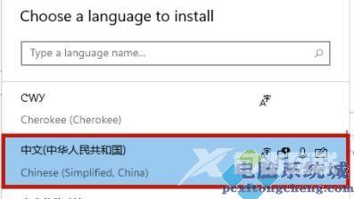 5、在语言选择列表中找到中文,当然如果我们要使用其他语言在这里选择其他语言就可以。