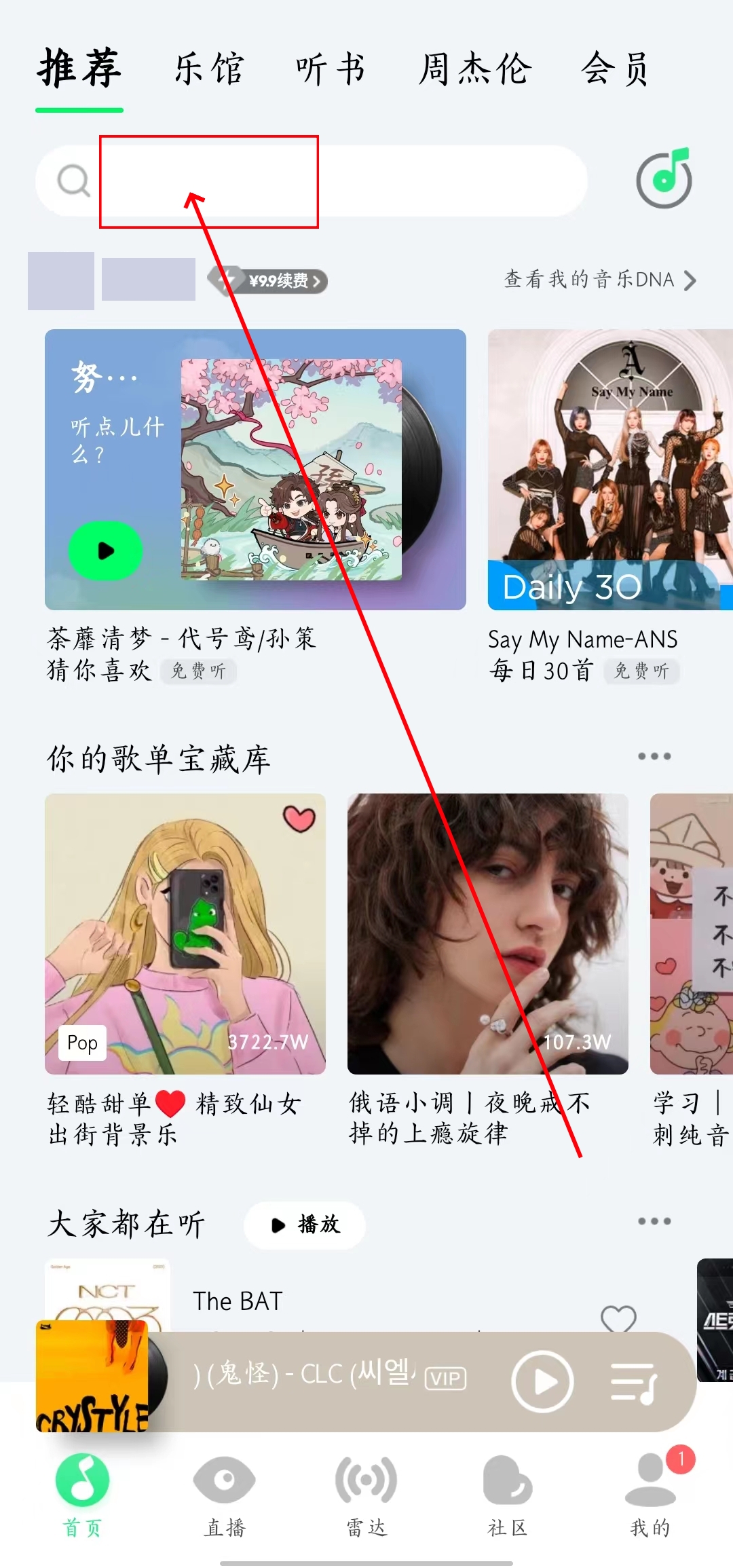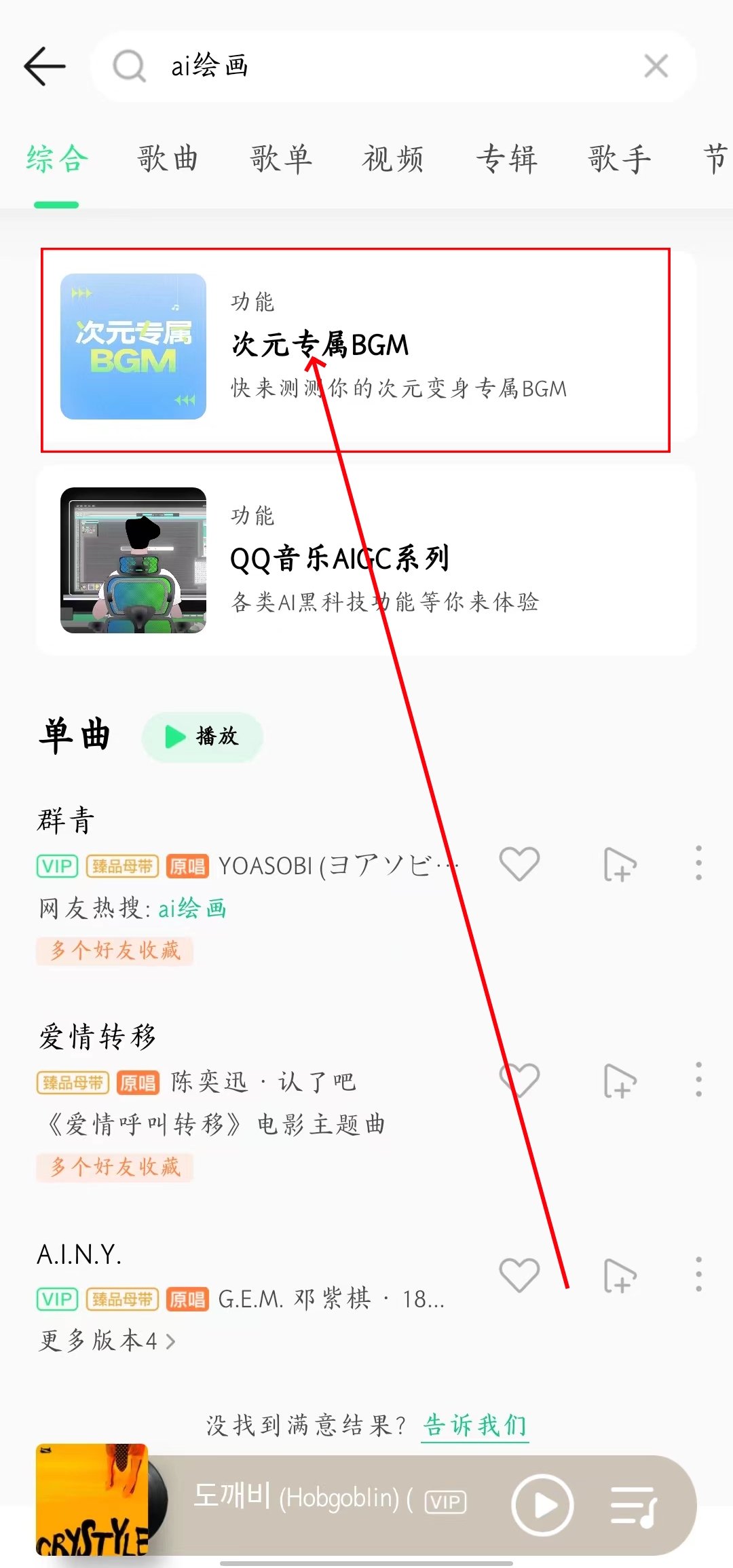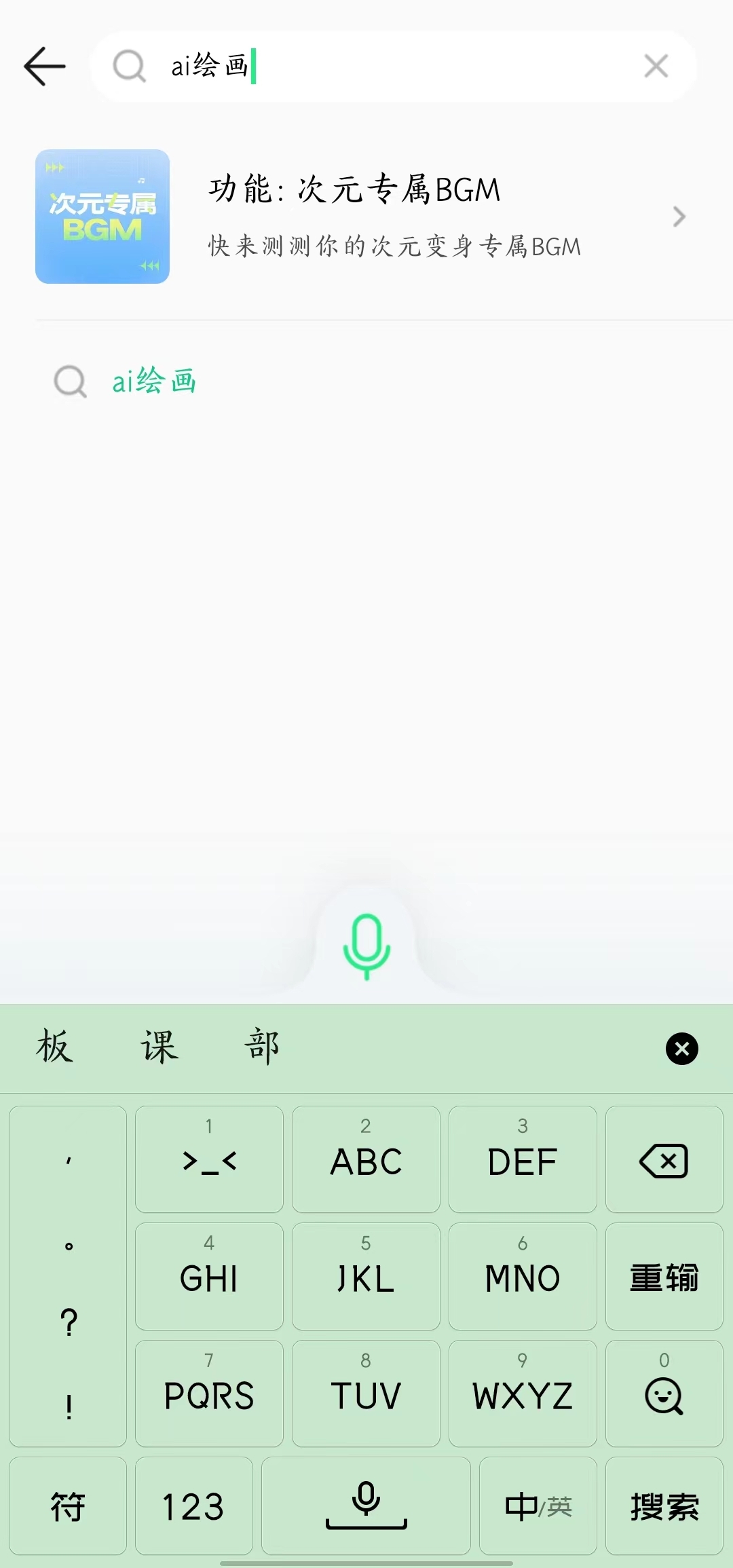 1、首先我们需要将QQ音乐更新到最新版本,然后打开QQ音乐,在搜索框里输入【ai绘画】。