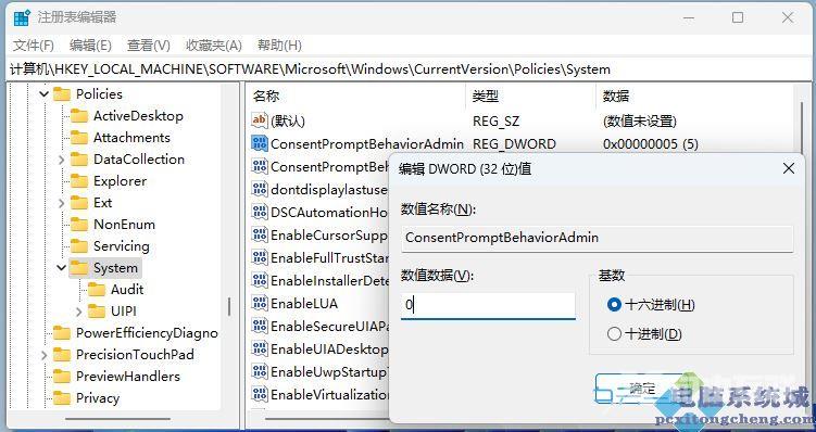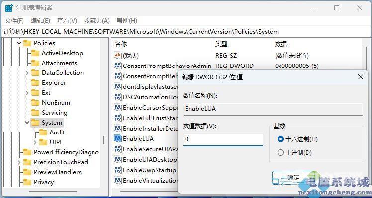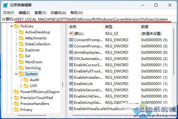 3、注册表编辑器窗口,依次展开到以下路径:HKEY_LOCAL_MACHINESOFTWAREMicrosoftWindowsCurrentVersionPoliciesSystem