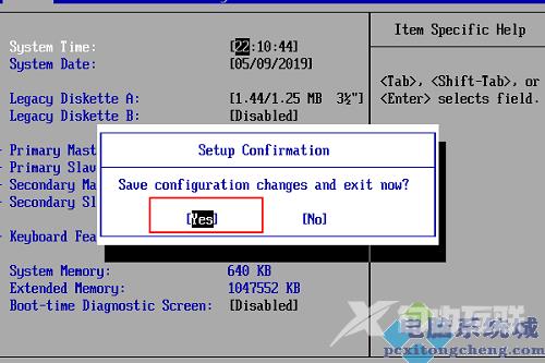 3、按下键盘上的F10,选择yes并保存,保存之后电脑会重新启动。