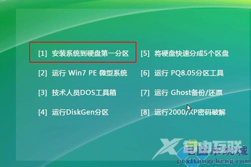 4、开机之后进入系统盘界面中并选择安装系统到硬盘第一分区。