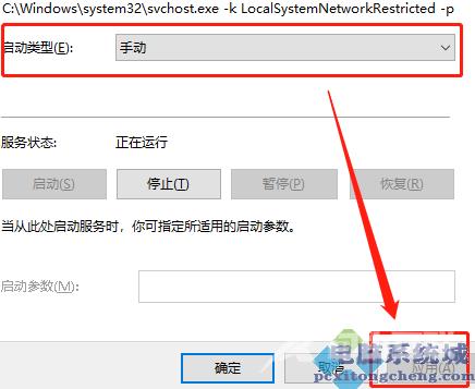 3、然后右键选择属性,把这里面的设置改成手动或者是禁止都是可以的,接着点击应用,再重启电脑就可以了。