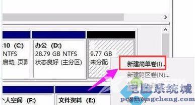 5、压缩完成就会出现未分配的内存了,右键选中它点击新建简单卷