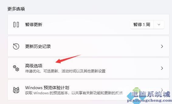 3、在Windows更新中,点击右侧更多选项下方的高级选项