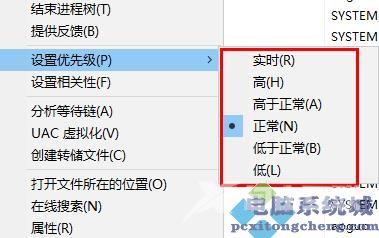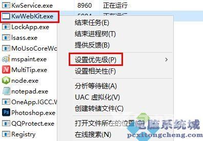 3、找到需要设置优先的进程,右击选择设置优先级。