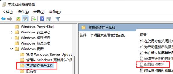3、然后按照顺序点击管理模板-Windows组件-Windows更新-管理用户最终体验。