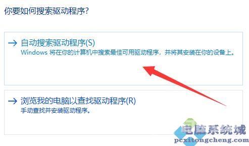 3、再选择自动搜素驱动程序并安装新驱动即可解决。