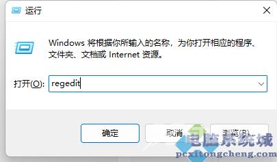 2、接着输入regedit并回车打开注册表。