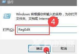 4、按WIN+R,输入RegEdit,点确定,打开注册表编辑器