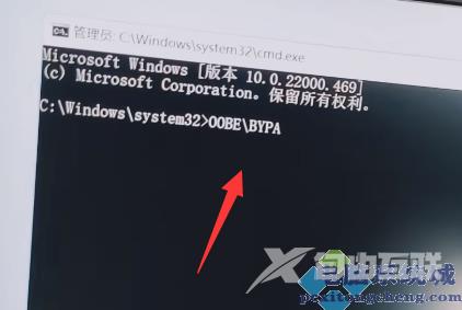 2、按下后会打开命令提示符,我们在其中输入oobebypassnro并按下回车。
