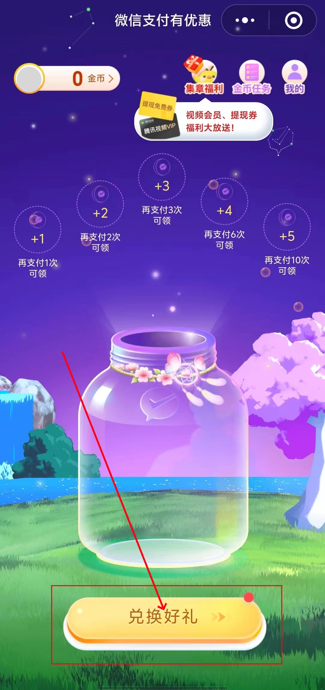 4、使用微信支付就能够在这里领取金币,之后点击【兑换好礼】。