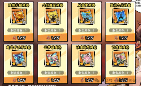2、银霜楼:每周购买两个红色秘籍卷轴,资源充足时可购买皮肤和“字”。