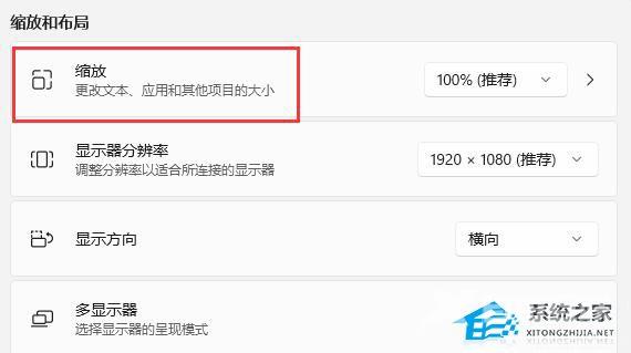 4、随后就能找到“缩放”选项;如图所示: