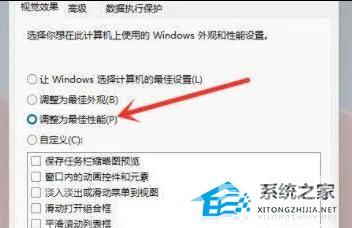 5、再点击上方“视觉效果”选项卡,勾选“调整为最佳性能”即可。