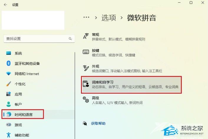 4、点击词库和自学习。