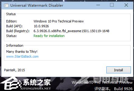 1、首先下载universal Watermark Disabler 这个单文件小工具,接着只需要选择以管理员方式运行该程序,点击右下方的「install」即可成功去除,完成后它会自动注销系统。
