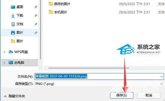 6、最后选择保存位置并“保存”就能保存win11截屏了。
