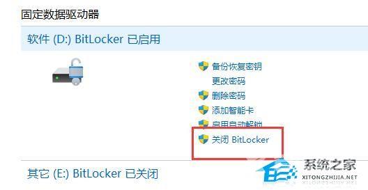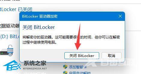 4、在弹出提示中选择“ 关闭 Bitlocker ”。