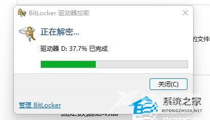 5、等待解密进度条走完,就可以解除win11硬盘加密了。