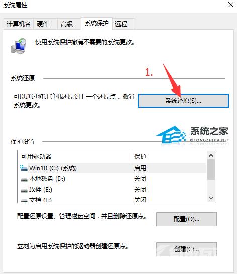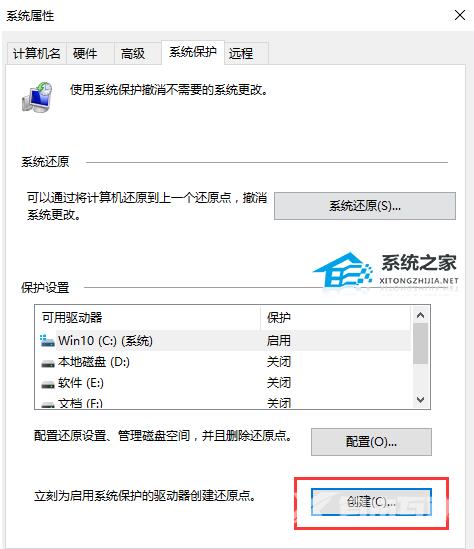 4、再单击“创建”——为还原点命名——创建成功——关闭还原到某个还原点。