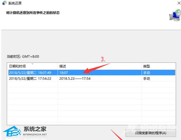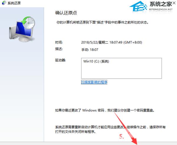 5、单击“系统还原”——选择“下一步“——选择还原点——单击“下一步”——点击“完成”即可。