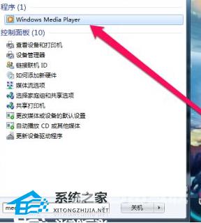 6、另外我们也可以在开始菜单中,进行搜索windows media player图标,点击运行(如图所示)。