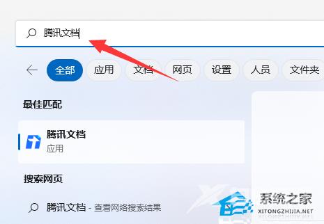 2、然后在上方搜索栏搜索“腾讯文档”。