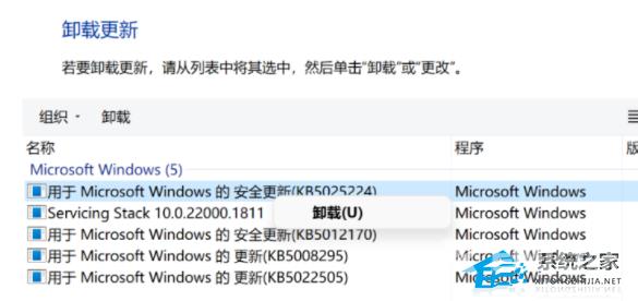 3.在这里找到你要卸载的补丁,然后右键选择卸载。