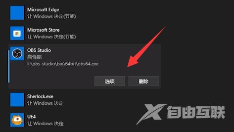 4、进入后,找到“OBS软件”,选中它点开“选项”