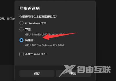 5、最后将它的图形首选项改成“高性能”并保存即可解决。