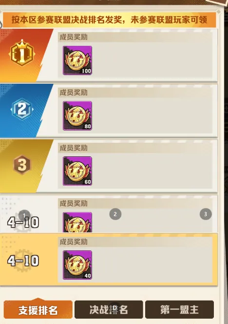 (虽然不是本区第一盟军团无法正式参战,但位居二线的联盟可获取于第一联盟一样的活动奖励,可所谓是真正意义上的同生共死!)