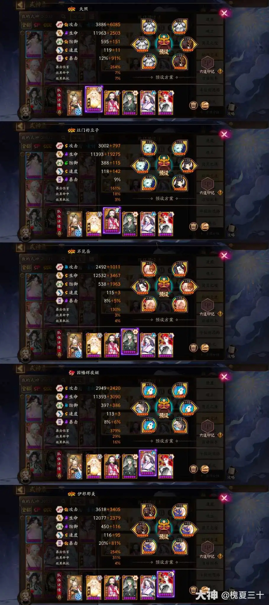 阵容配速:弥豆子>260速>伊邪那美>210速>天照>130速>其他式神
