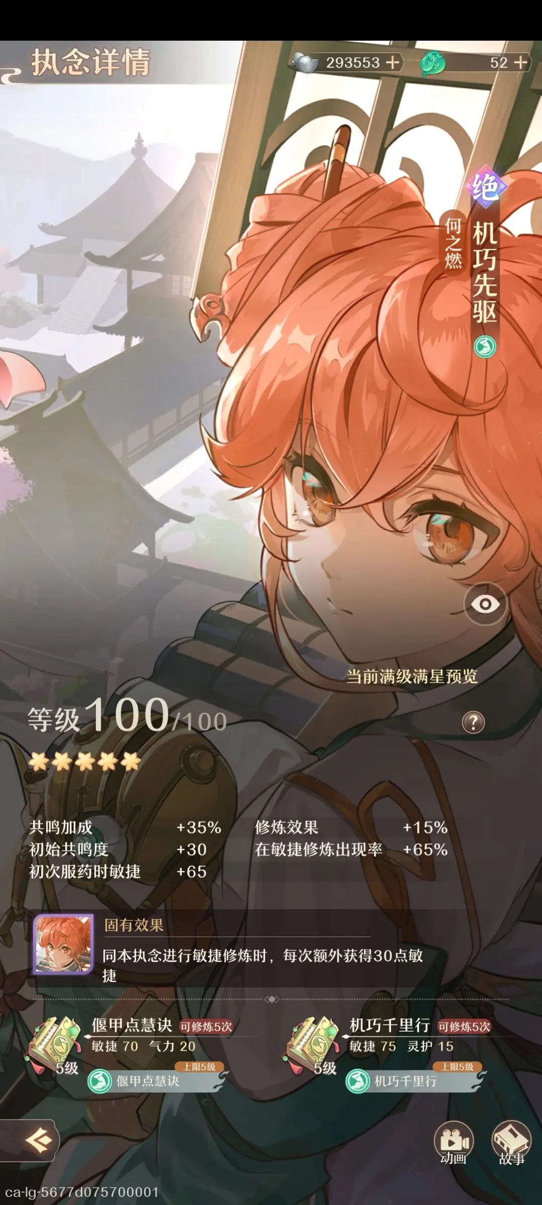 小天才:t0属性(+45,+15,+80),t1技能,和人物何之燃有羁绊加成,好用