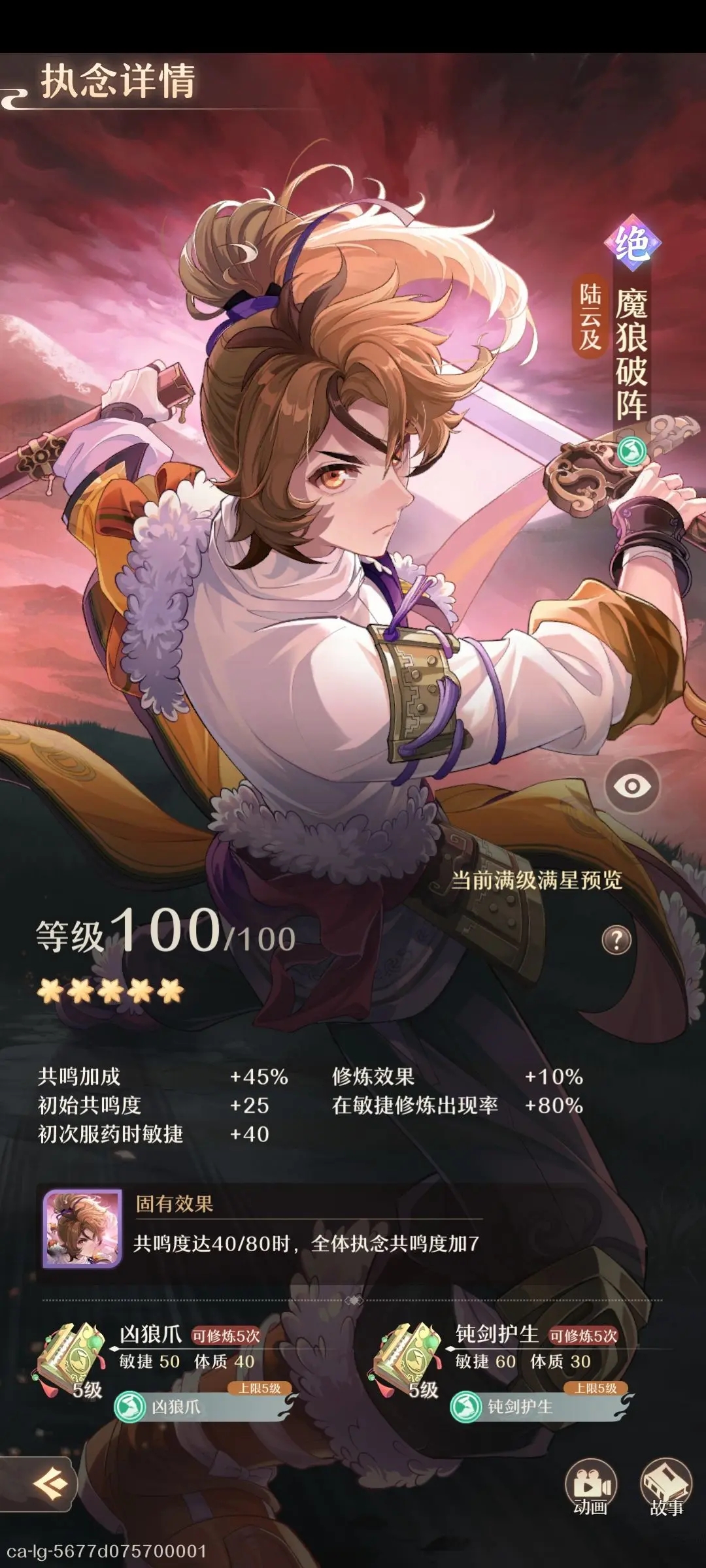魔狼:t0属性(+45,+10,+80),t1技能,快速积攒共鸣值,神卡