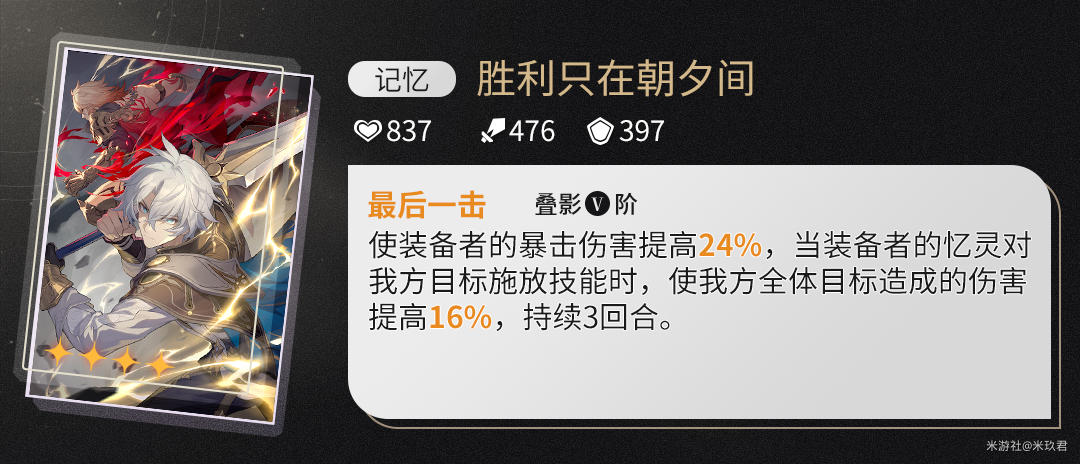 四星同谐数值太低了,不适合大部分玩家使用,这里就不讨论了。我们辅助位已经排除了鸭鸭和花火,现在剩下的选择分别是知更鸟,星期日,记忆主以及阮梅,我们逐一分析。