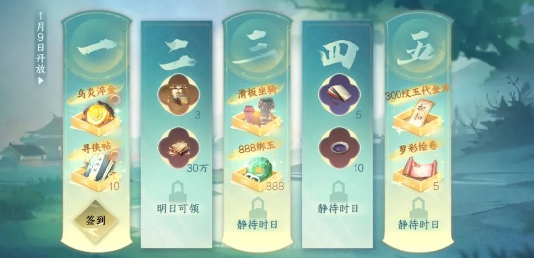 1月13日 300纹玉代金券+罗彩绘卷*5