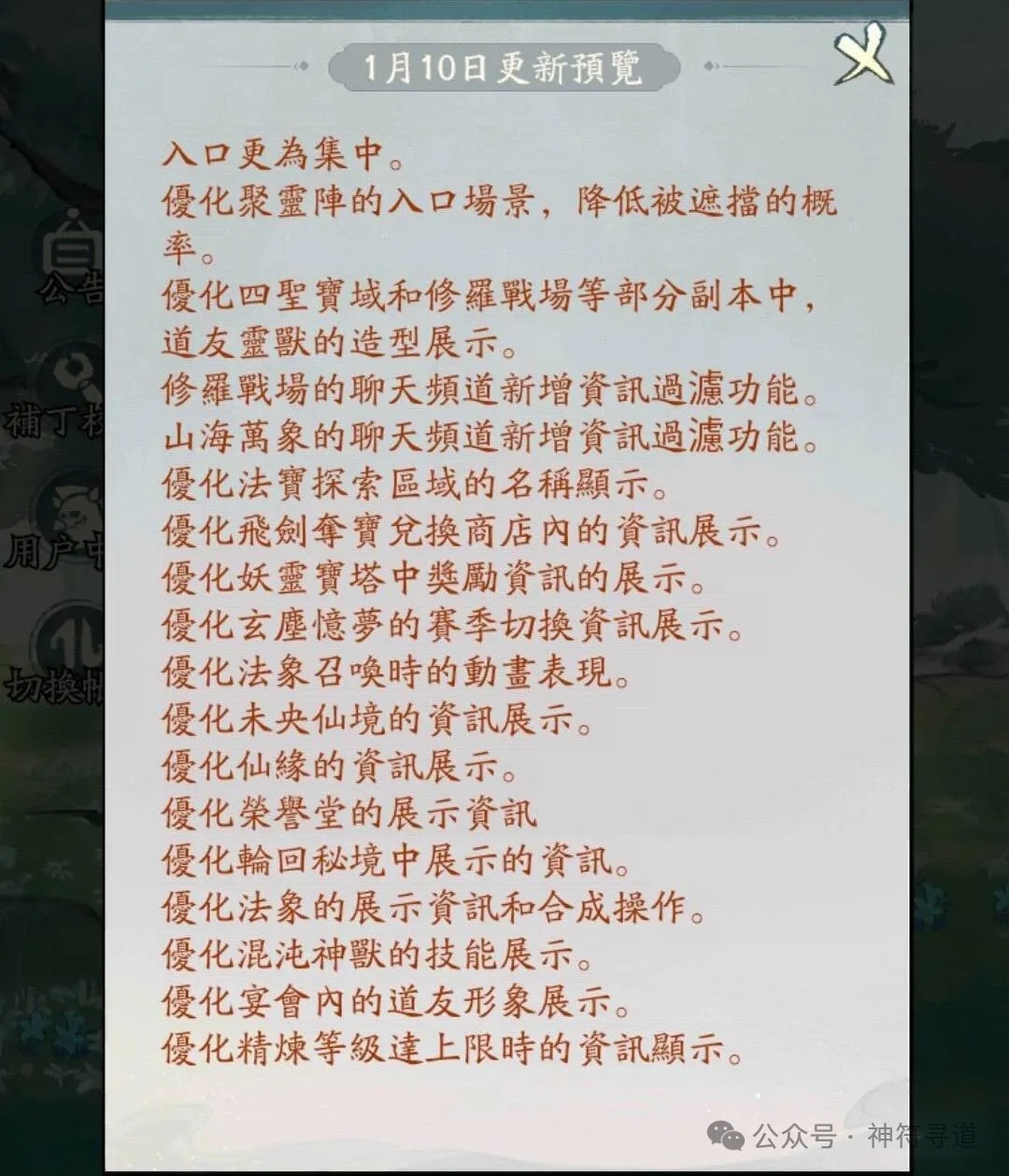 2、总结来说这次更新,没什么东西基本上都是优化,上古战场不优化玩法或者匹配机制容易劝退,新的托管估计是要离线挂机,其他的只能说道友们有问题多反馈,同为玩游戏的只能帮忙传播一下所需要优化的地方。