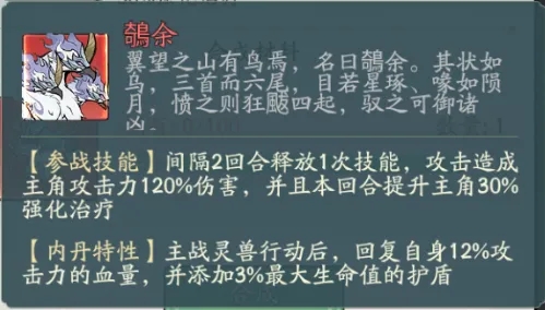 ②鵸余技能增加强疗,内丹特性又增加治疗效果以及护盾,可谓是又有伤害又有奶量!比较综合的一只灵兽了!