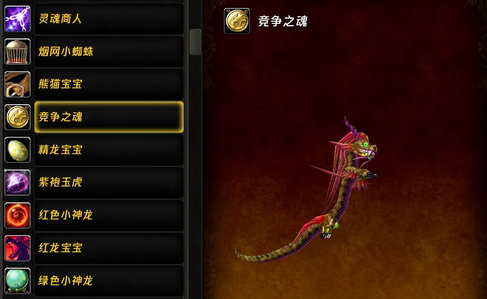 另外一只同模型不同色的小宠物叫做【竞争之魂】,在魔兽世界怀旧服60年代国服也曾推出相关的活动进行赠送。
