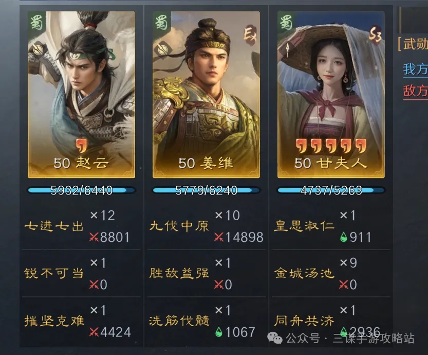 这一套主要让赵云作为姜维启动器,七进七出的多段伤害+摧坚克难的稳定伤害基本可以让姜维输出拉满。