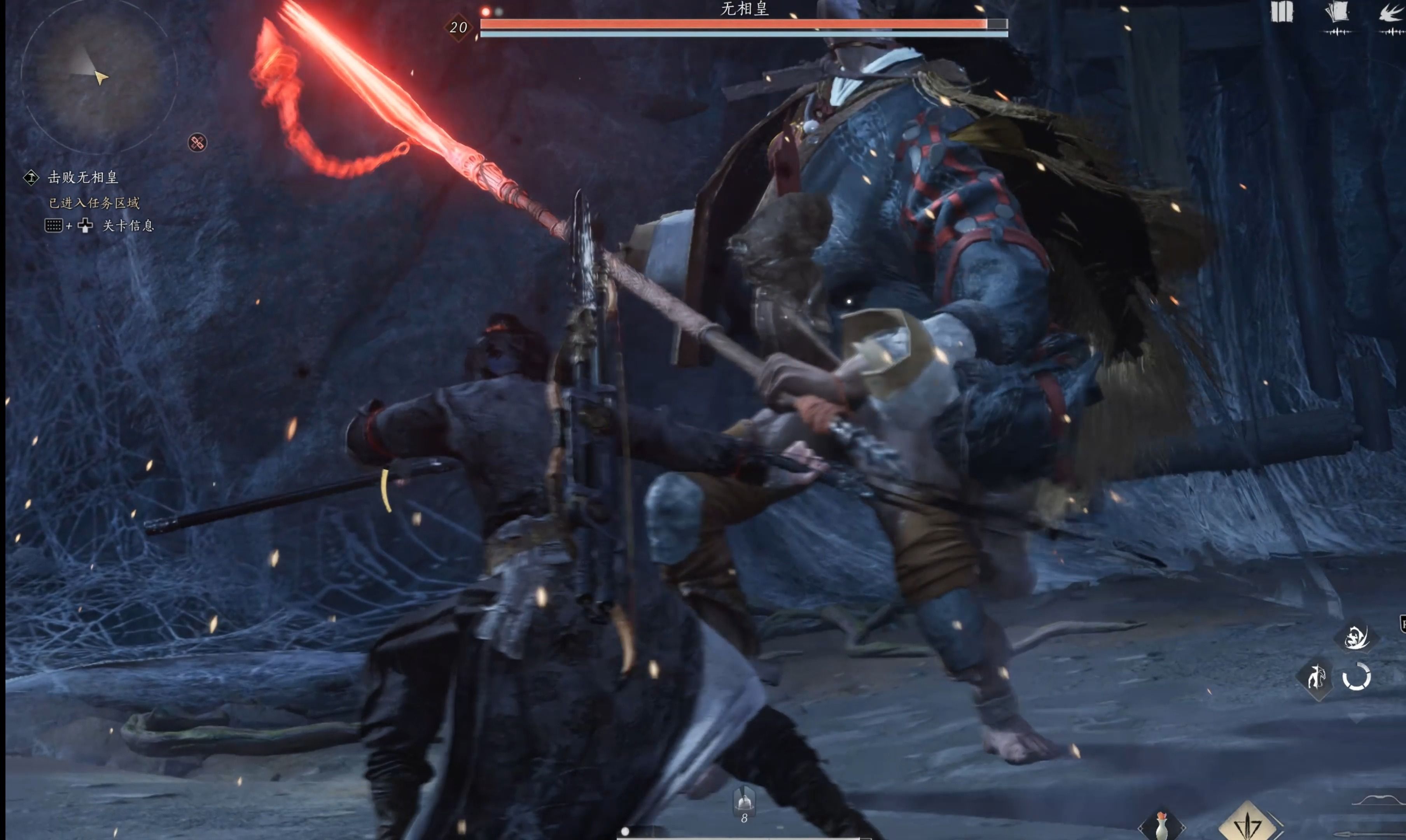 3、开场我们先一边靠近无相皇一边蓄力,在他开场固定钩子出来前砍他一套,然后马上卸势破掉钩取,这个可以多练练,反正开场必放没啥试错成本,卸势时机是钩子闪光那一下,还挺明显的