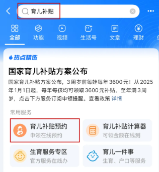 1.打开支付宝,搜索【育儿补贴】
