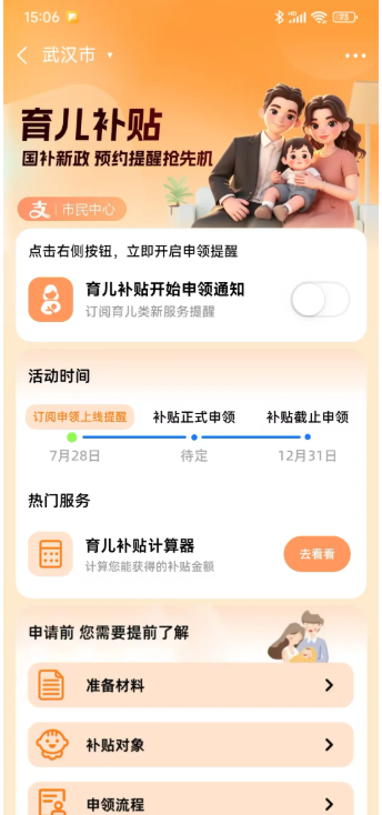 2.点击【育儿补贴开始申领通知】