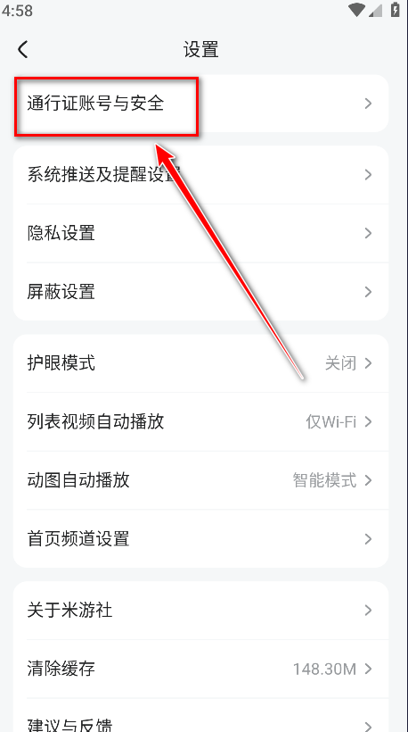 3.点击通行证账号与安全。