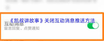 进入“消息通知”页面后,你会看到一长串的消息通知开关列表。这里面有各种类型的消息推送开关,比如故事更新提醒、活动通知等等。而我们要重点关注的是与互动相关的消息推送开关。你会发现有“评论与私信通知”“点赞通知”“互动消息提醒”等类似的选项。把这些与互动相关的消息推送开关都切换到关闭状态就大功告成啦!当你完成这一系列操作后,凯叔讲故事就不会再频繁地给你推送互动消息啦,你可以更加专注地沉浸在精彩的故事世界里,尽情享受属于你的故事时光。