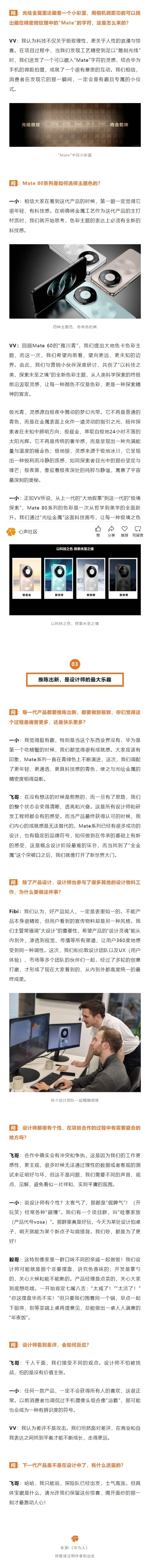 华为 Mate 80 系列 ID(工业设计)设计师“飞哥”表示: